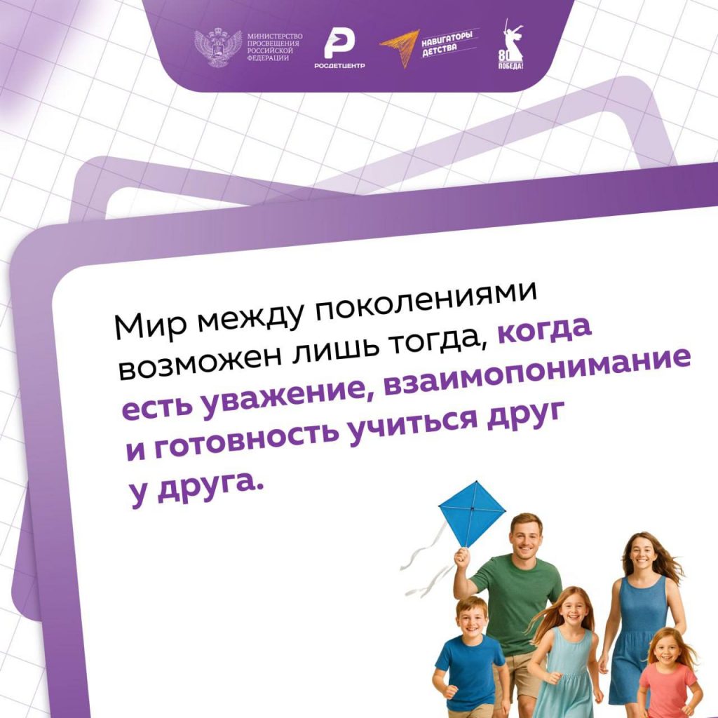 В рамках темы занятий «Разговоры о важном», команда проекта «Навигаторы детства» подготовила карточки о значении взаимопонимания между поколениями.