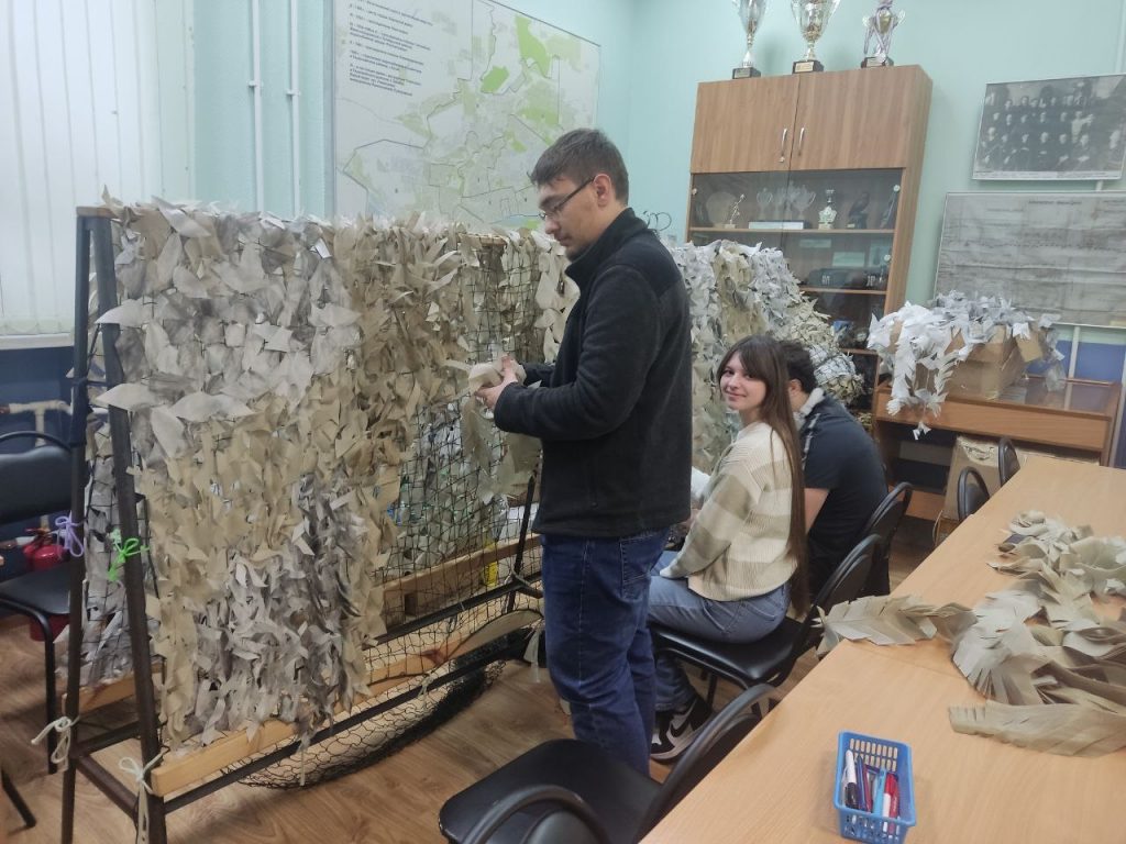 Студенты колледжа продолжили активное участие в общероссийской акции взаимопомощи #МЫВМЕСТЕ. Одним из направлений их деятельности стало изготовление маскировочных сетей для нужд военнослужащих, принимающих участие в специальной военной операции. Эта инициатива демонстрирует высокий уровень солидарности и ответственности молодых людей, стремящихся внести вклад в общее дело защиты нашей страны.
