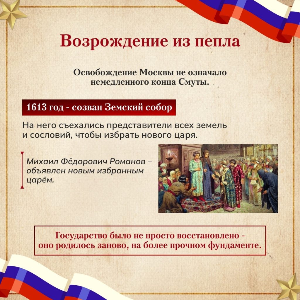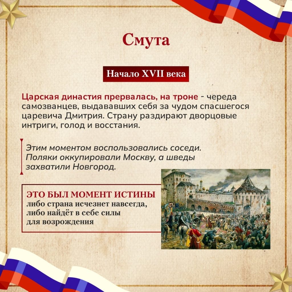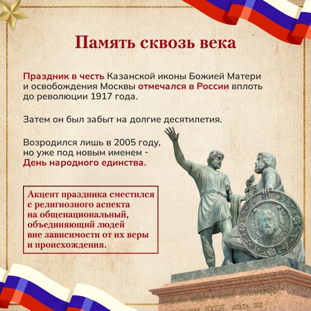 Этот праздник олицетворяет преемственность и связывает различные эпохи российского государства – от трагического Смутного времени, когда судьба страны висела на волоске, до сегодняшнего дня.