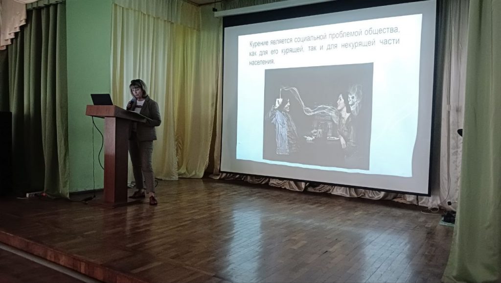 В ходе встречи Анна Николаевна ознакомила студентов с историей появления табака и проинформировала о том, какое количество людей в мире страдает от этой пагубной привычки, приведя исторические справки. Из видеоролика ребята узнали о страшных последствиях курения, о том, что курение является самой распространённой из всех вредных привычек населения, а никотин — один из самых опасных ядов, наносящих вред не только самому курильщику, но и окружающим его людям, которые становятся пассивными курильщиками. В завершение мероприятия врач призвала присутствующих вести здоровый образ жизни, отказавшись от употребления табака и других вредных привычек.