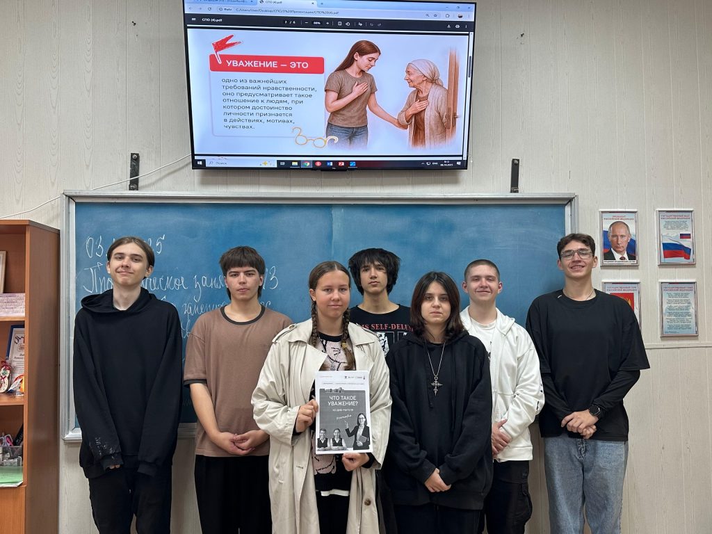 Это умение видеть ценность каждого человека: одноклассника, друга, учителя, близких людей и окружающих. Уважение проявляется в наших словах, поступках и отношении к другим.