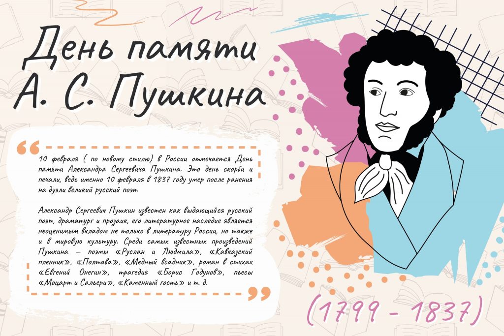 10 февраля в России отмечают День памяти А. С. Пушкина. Именно в этот день в 1837 году погиб на дуэли гений русской поэзии.