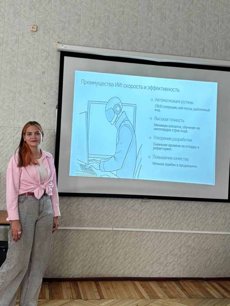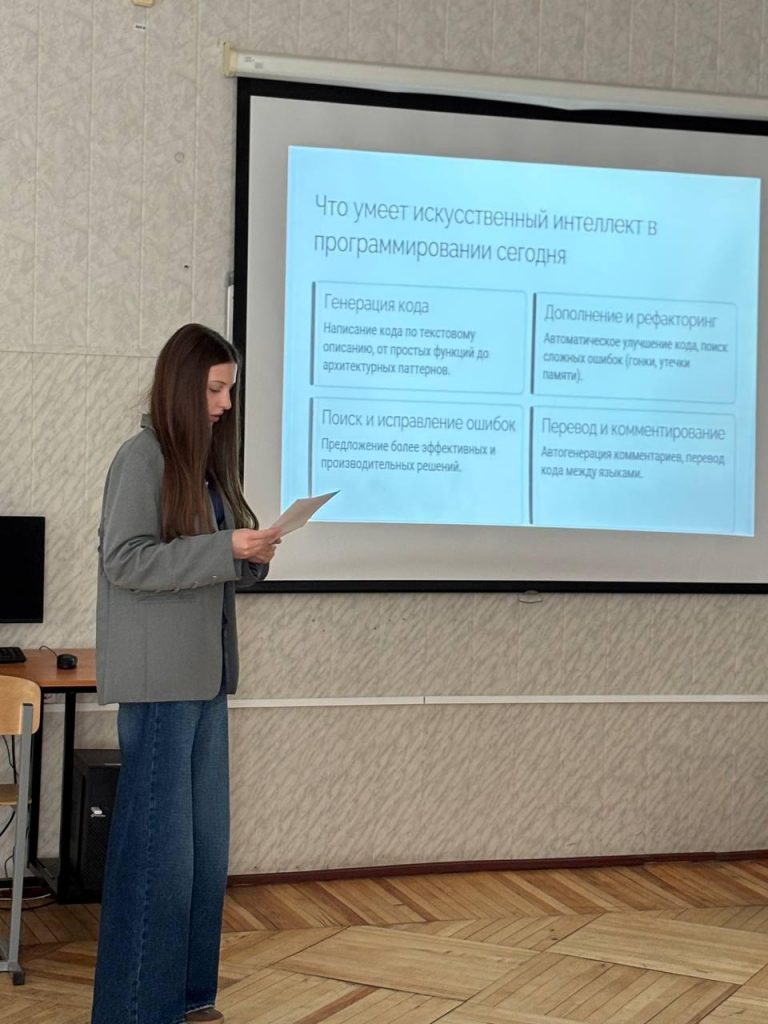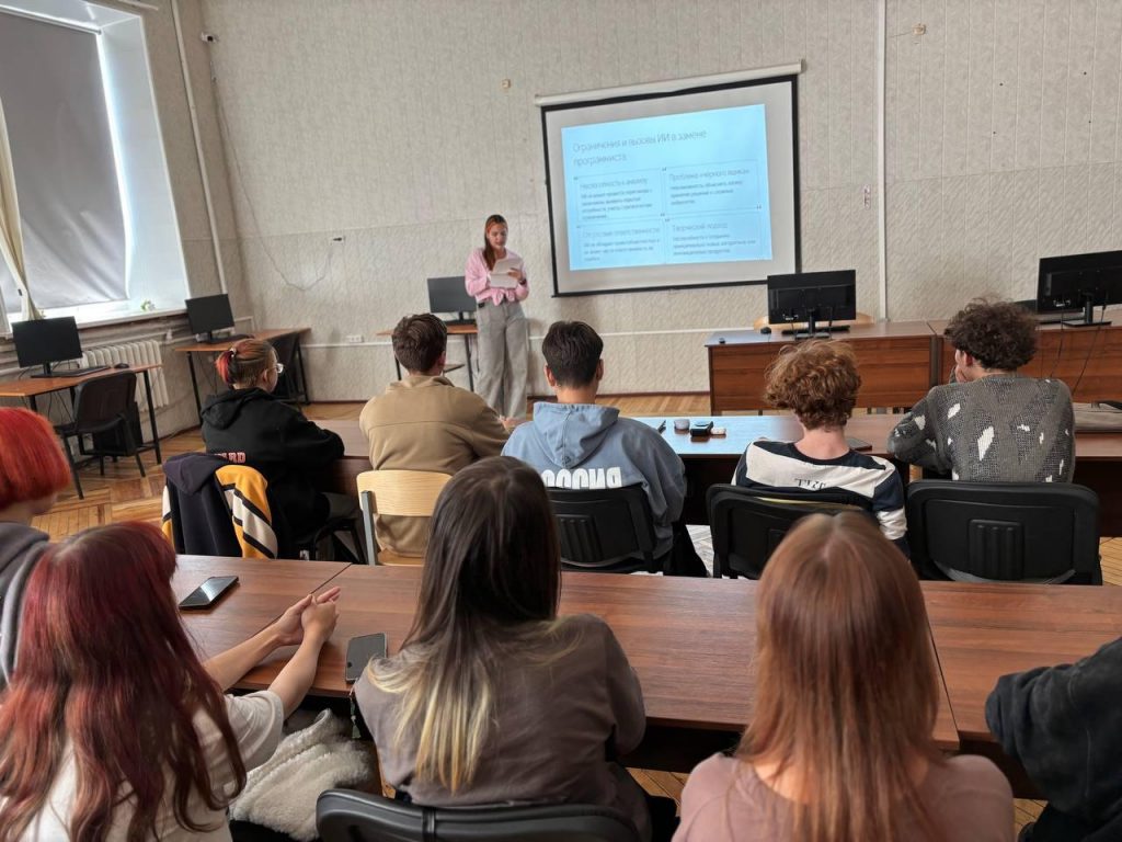Свои доклады предоставили студентки группы ПО-31 Куркиева Лейла, Гонтарева Анфиса и Лоик Елизавета. Были подняты такие вопросы, как использование искусственного интеллекта в сфере разработки программных продуктов, а также – в кибербезопасности.