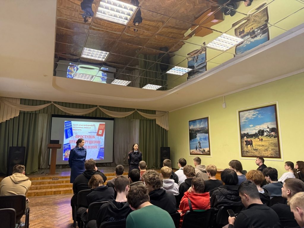 18 февраля 2026 года помощник прокурора прокуратуры Ленинского района Чебрикова Н.Ю., лейтенант полиции Передыгина О.Д., инспектор подразделения по делам несовершеннолетних отдела полиции №4, начальник экспертно-криминалистического отделения отдела полиции №4, подполковник полиции Карлов А.В. провели лекции-беседы в нашем колледже.