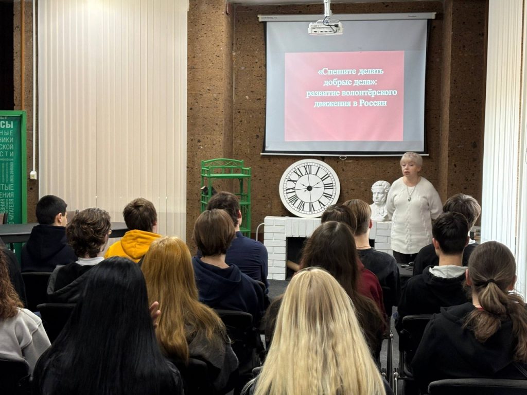 Особое внимание было уделено истории появления и становления добровольческого движения в России, роли молодёжи в поддержке социально значимых инициатив и влиянию волонтёрской активности на личностное развитие молодых людей.